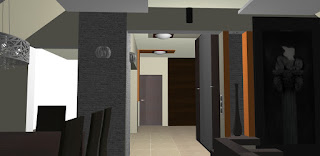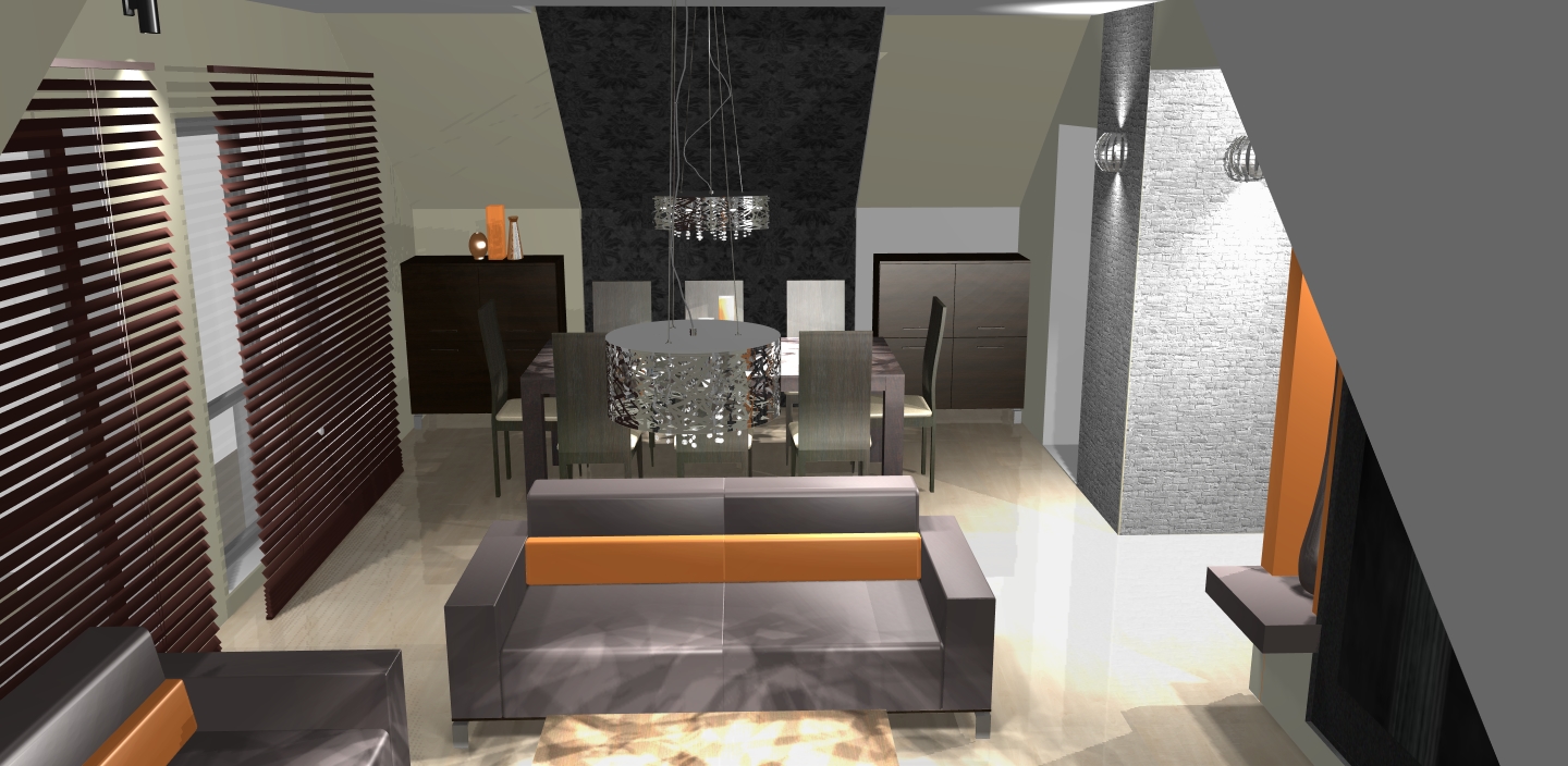 Kolejna wersja to ponownie zmiana w oświetleniu nad barkiem. Zabudowa nad nim jest nieco obniżona i załamana w kierunku sufitu. Układ ten nawiązuje do załamania blatu barku w kierunku stołu.